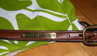 Mine says PonyUP! Kentucky but you can have the brass name plate on the strap personalized with up to 20 characters.